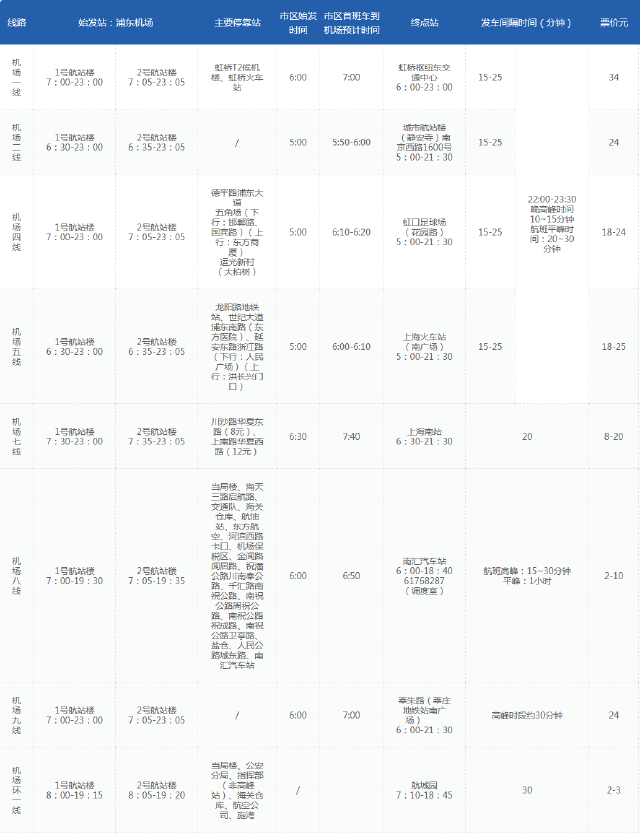 1号航站楼每天23:00后至当日航班(含延误航班)结束后45分钟,2号航站楼每天23:05后至当日航班(含延误航班)结束后45分钟,由T1航站楼出发经过世纪大道、延安中路等,抵达虹桥枢纽东交通中心,发车间隔时间不超过45分钟,票价18-34元。