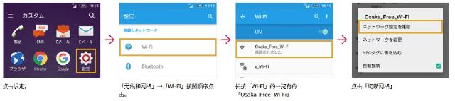 只要连接过一次Osaka Free Wi-Fi或者Osaka Free Wi-Fi Lite,则下次将自动连接。如果想禁止自动连接,见如下步骤。