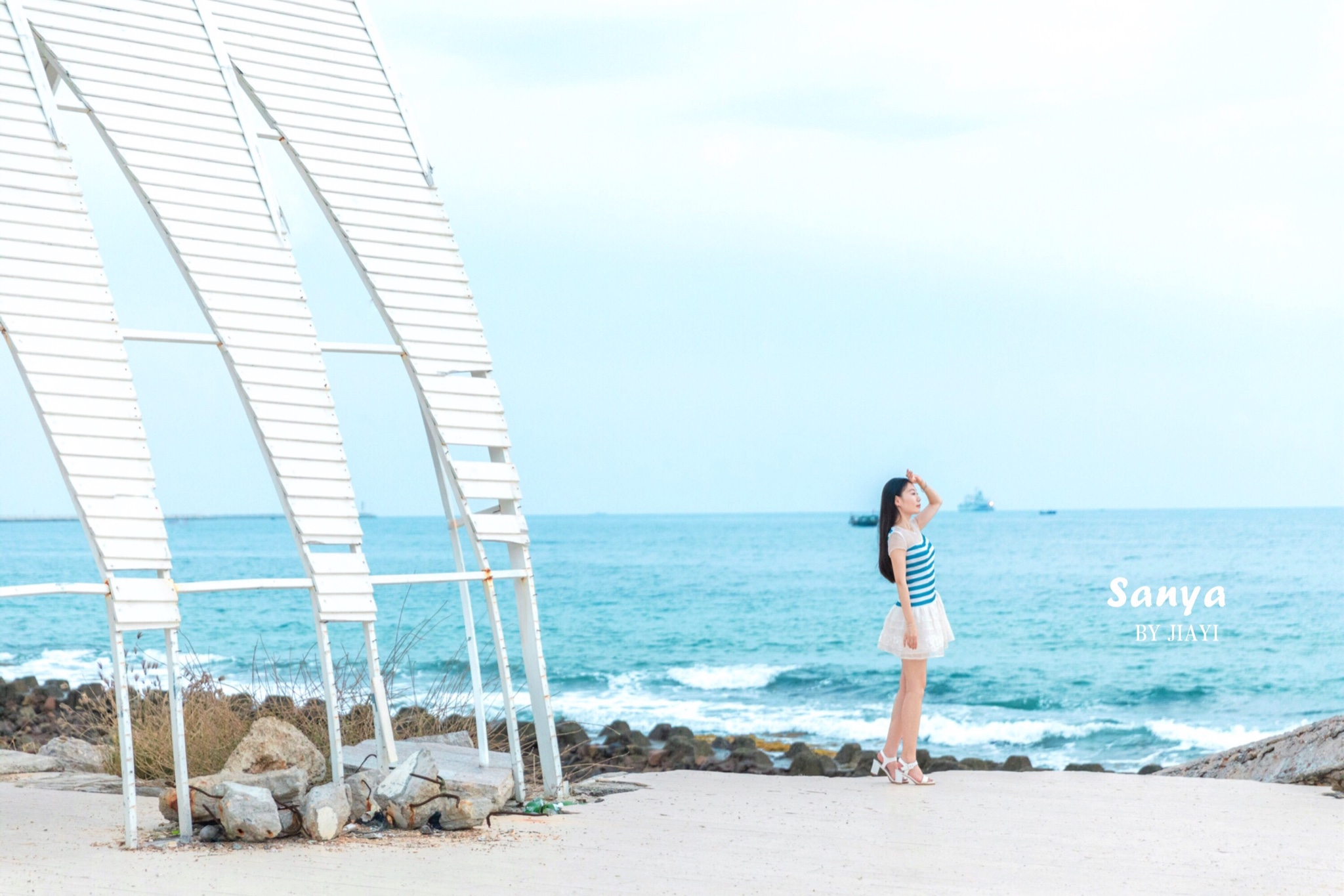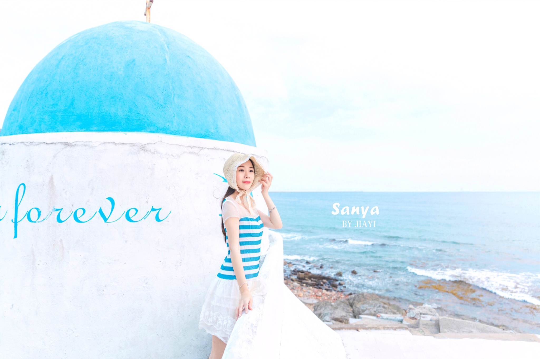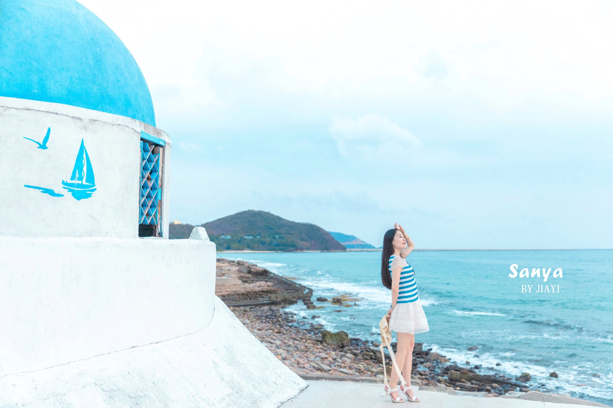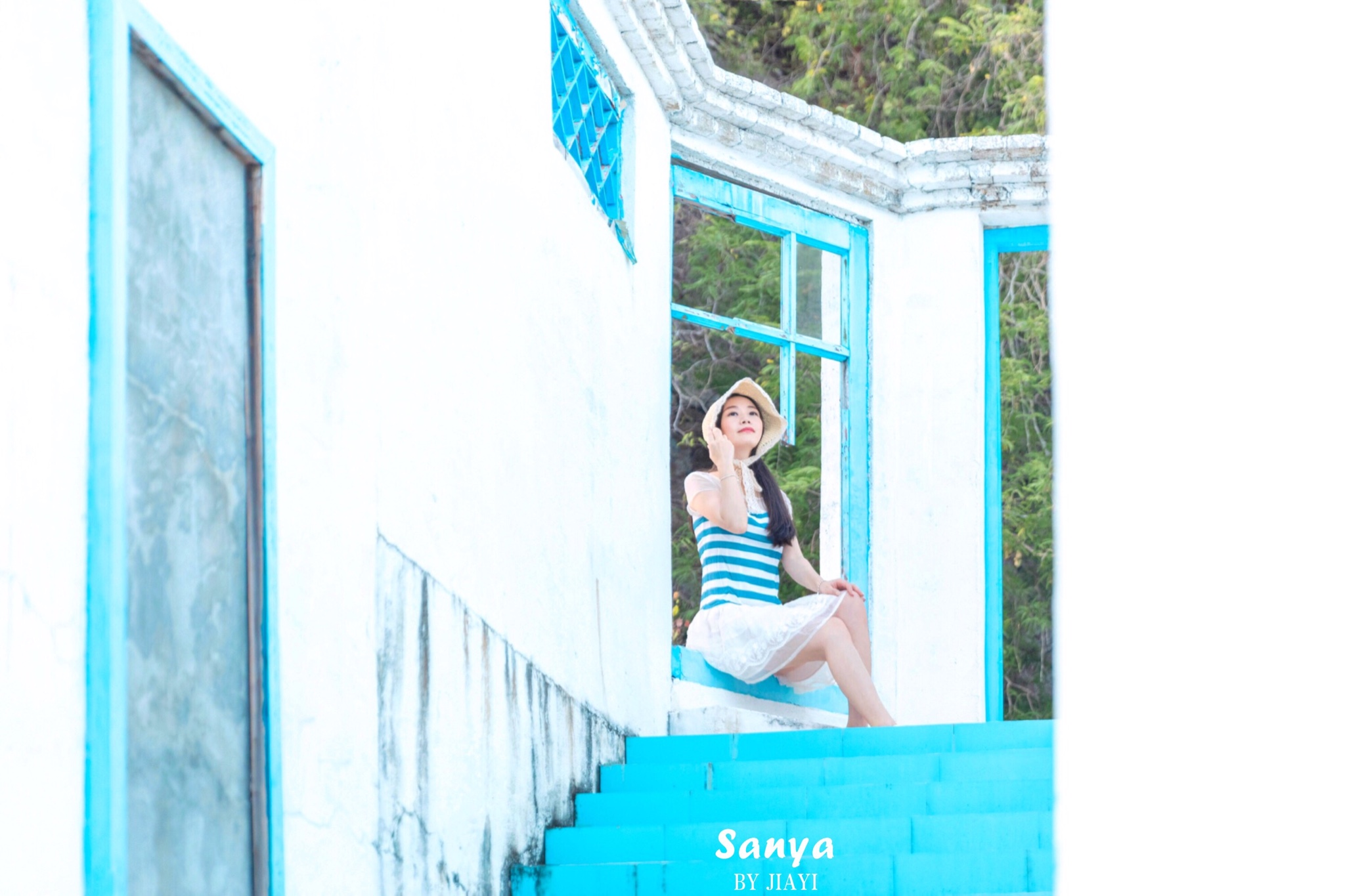 到了目的地,一个人都没有,顿时,心里窃喜,赶紧相机拍起来。 三亚 的阳光很烈,不太推荐正午过来,特别晒,下午三四点比较适合,蓝白相间的房子,蓝色的楼梯,很有感觉。