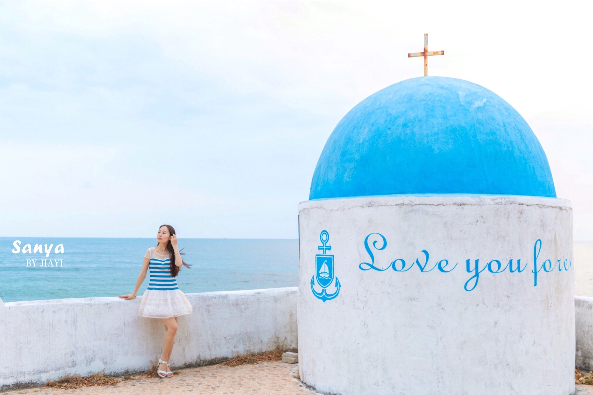 在 三亚 的闺蜜告诉我,这里是 三亚 的网红摄影基地,有蓝顶的教堂和欧式广场,很多游客都会来这拍婚纱照。这几天天气很好,将车停在码头后,走几步就能到海滩了。