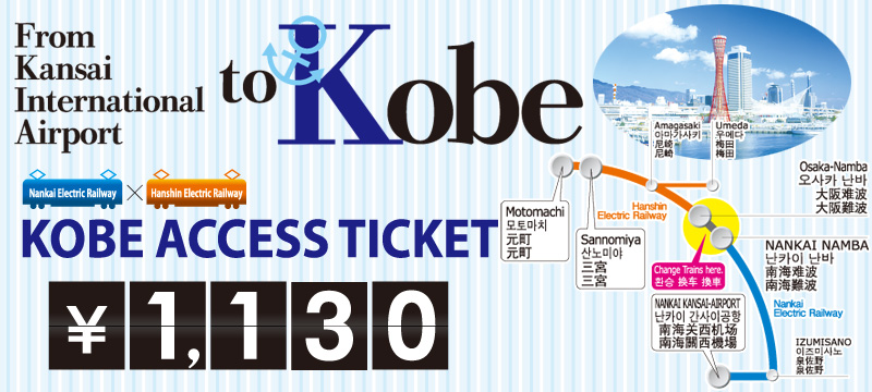 可从关西机场搭乘南海电铁至大阪难波,再转乘阪神电车至难波~神户元町间各车站。