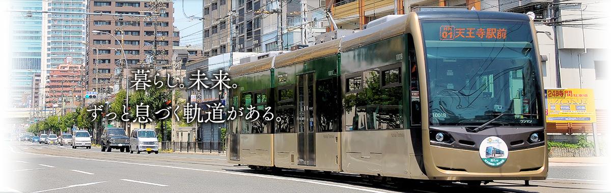 阪堺电车营运的阪堺上町线、阪堺线是从大阪市区前往南边堺市的路面电车。阪堺上町线的起点是天王寺駅前站,阪堺线则是通天阁旁的惠美须町站。