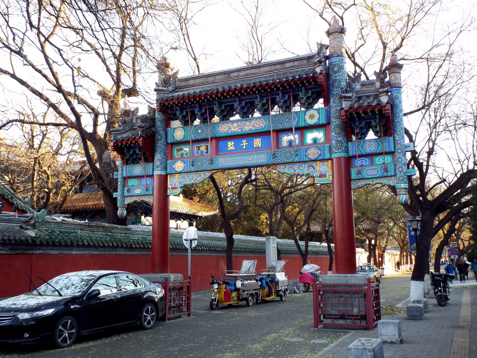 北京国子监始建于元大德十年(1306年),是元、明、清三代国家管理教育的最高行政机关和国家设立的最高学府。国子监南北布局,共有四进,中轴线上自南而北为集贤门、太学门、琉璃牌坊、辟雍、彝伦堂和敬一亭。