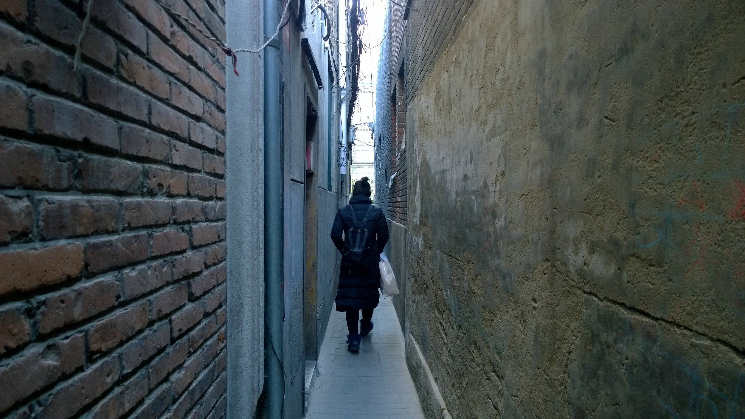北京最窄的胡同,只容一人通过,两人侧身都难并行。也不长,50米左右,是条死胡同。挨家都贴上了文物保护的封条,已无人居住。