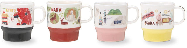 这里销售的是颇具特色的“日本地理系列”。简单地说,就是以日本各地为蓝本,融合地区特征来设计的杯子,还创新的加上了当地人才会使用的语言词汇,非常具有“特产感”。
