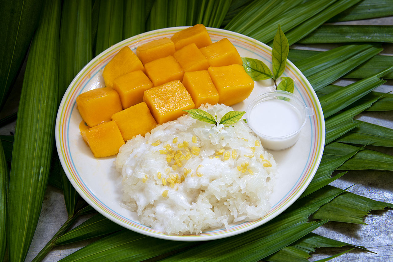 看到水果就根本没办法拒绝啊!有木有!还有看起来就很稠软的糯米饭,完全就是软妹子的菜啊~~让芒果的香甜,与嚼劲十足的糯米混合在你的口中,是不是感觉甜蜜极了~~推荐MAE VAREE家的芒果糯米饭,很多人被种了草呢。