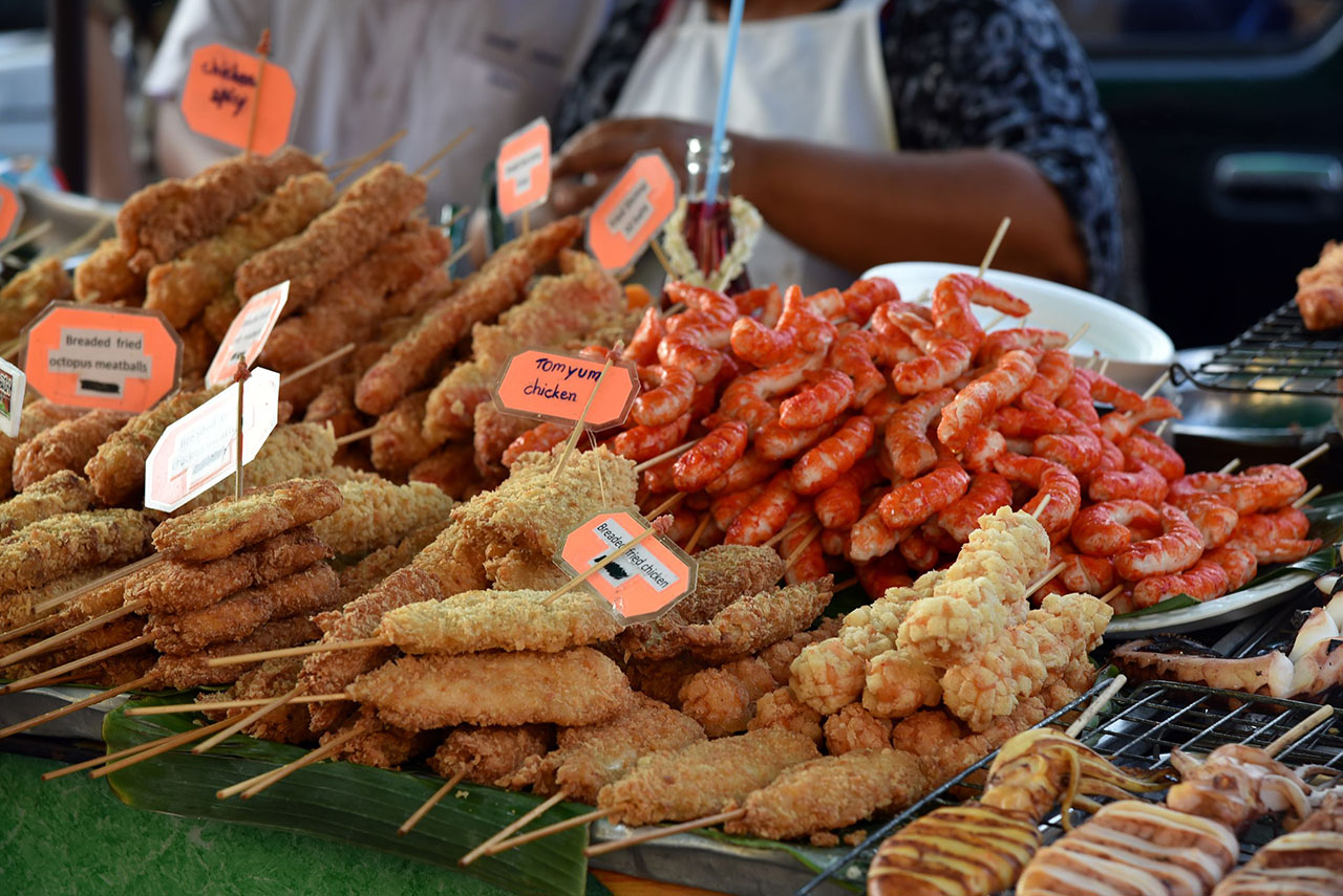请你带一颗吃货的真诚之心,让味蕾暴走曼谷。无论你是爱小清新的水果冰沙,或是重口味的炸昆虫……额等等,这是什么鬼?当然还有可口的沙拉、鲜香满口的海鲜料理、河粉料理以及串串什么的等着你哦!总之曼谷绝对可以说是吃货的天堂,在美食面前,甩开你的矜持,敞开你的肚皮!