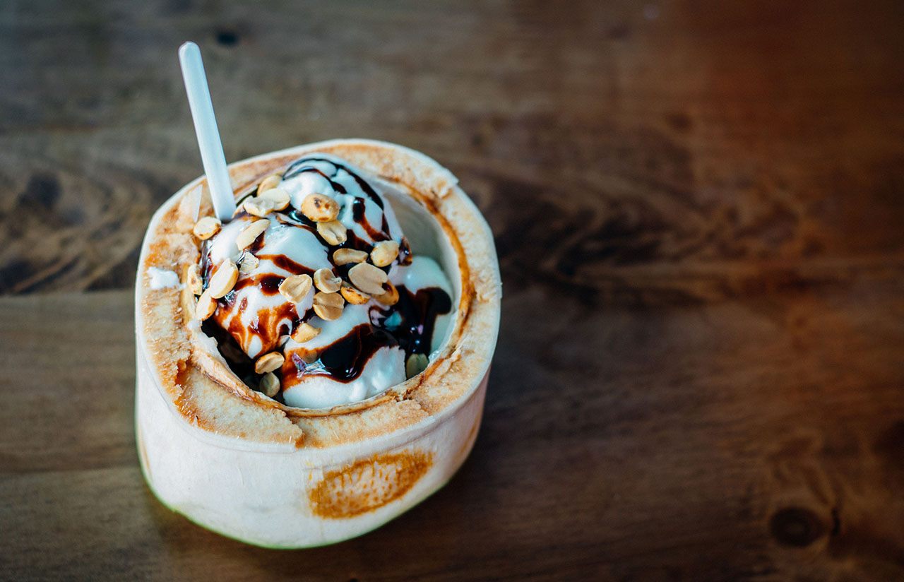 喜欢吃冰的你一定不能错过的椰子冰淇淋!新鲜的椰子上,盛放着看起来就很诱人的冰淇淋。吃过泰国的椰子冰淇淋,你一定会发现以前吃过的椰子味冰淇淋神马的都是浮云,有椰肉的椰子冰淇淋,才是真爱啊!推荐曼谷Terminal21商场里的一家椰子冰淇淋,好吃又便宜!