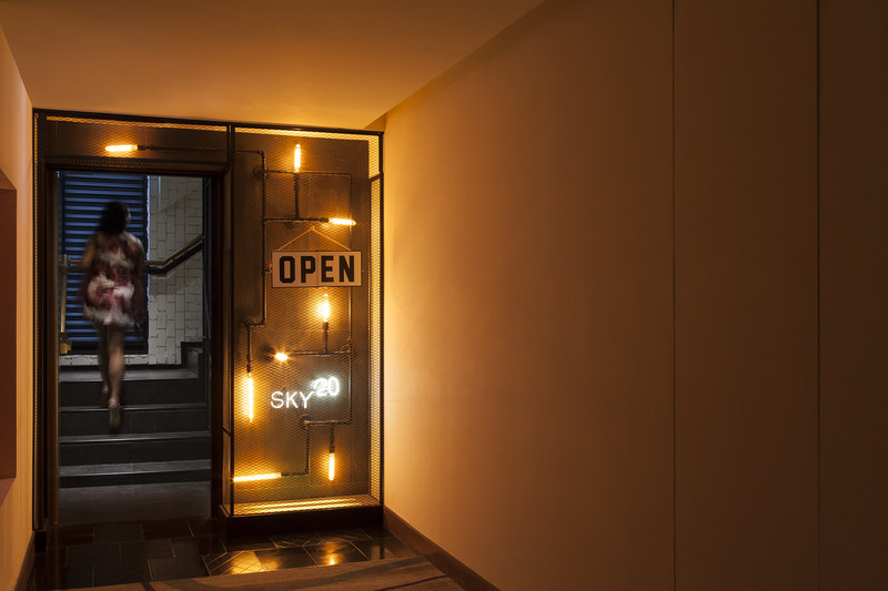 下了BTS或者地铁,往苏坤蔚路 Sukhumvit 20巷走,从巷口到酒店大概步行十分钟这样就到了。进酒店之后搭电梯到二十五层,穿过一个小楼梯就来到了SKY ON 20。