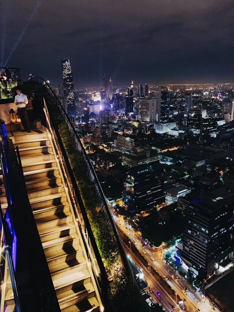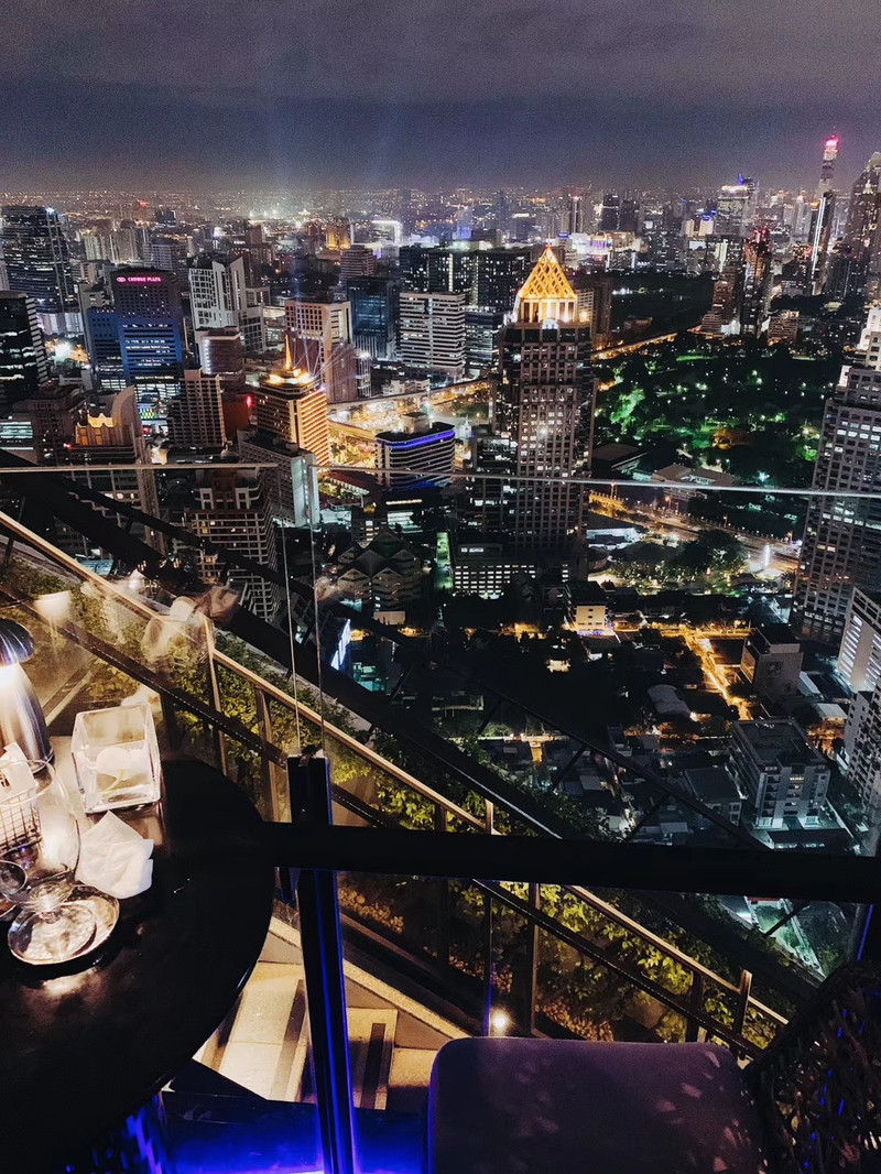 和朋友们在曼谷最高的Moon餐厅晚餐,家里或许还在飘着雪,但这里却可以在夜空下迎着风,头顶繁星灿烂,脚下灯火辉煌。