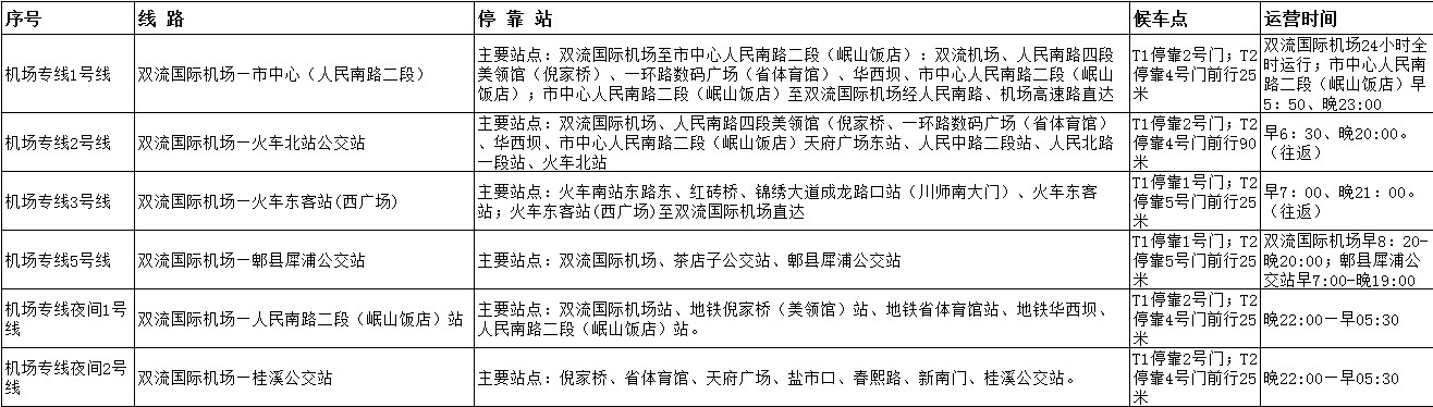 双流机场内有不少的机场专线,可以前往市中心。具体线路如下: