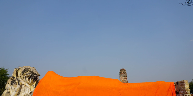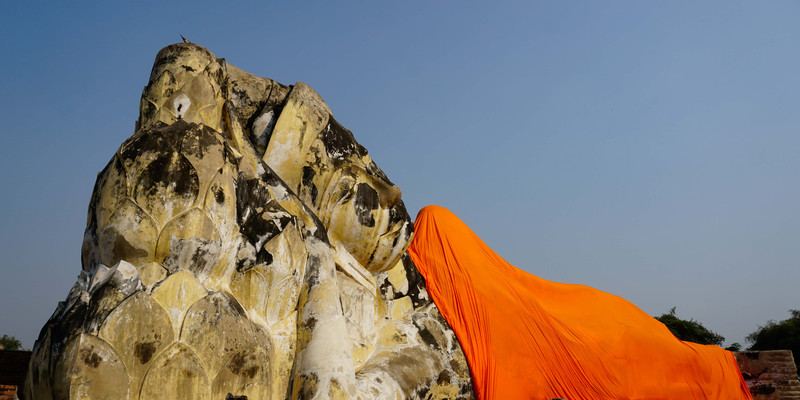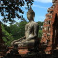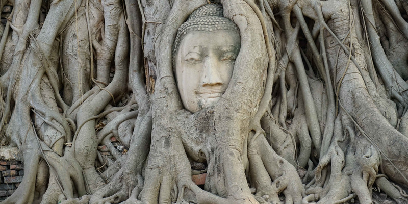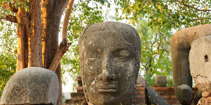 大城废墟遗迹之一,这里的满目疮痍都在向我们控诉那段缅甸军洗城时的无情战火。其中很有画面感的是入口处的著名景观“树抱佛头”,据说缅甸军在洗劫毁城之时,被破坏的佛像,头落入树中,经过岁月洗礼,便与树融于一体,成为泰国的七大奇迹之一。