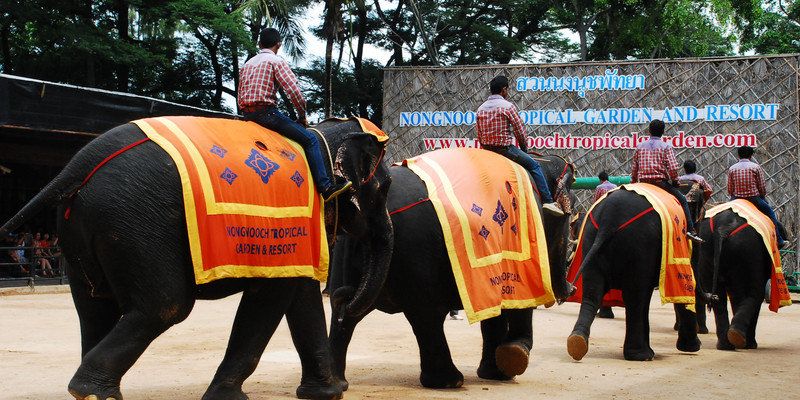 首站前往东芭乐园欣赏泰国民俗表演和精彩的大象表演,体积庞大的大象可以灵巧地踢足球、骑车、画画,还会用象足为游客做按摩,非常有趣。