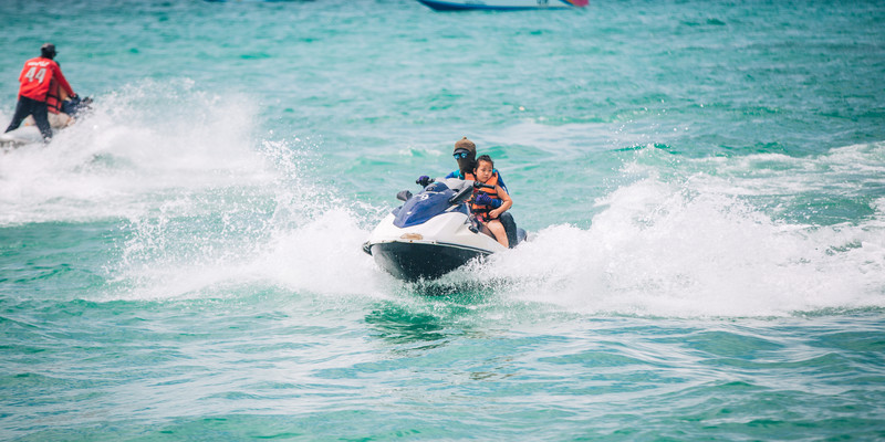 摩托艇:在教练陪伴下或教学后再小心驾驶,可以在大海中高速驰骋,感受速度与澎湃。驾驶时需穿戴安全帽和救生衣,并且切记不要离开海岸太远,做到不相互追逐嬉戏。适合寻求海上刺激项目的健康年轻人体验。