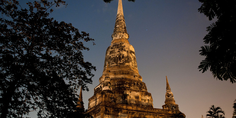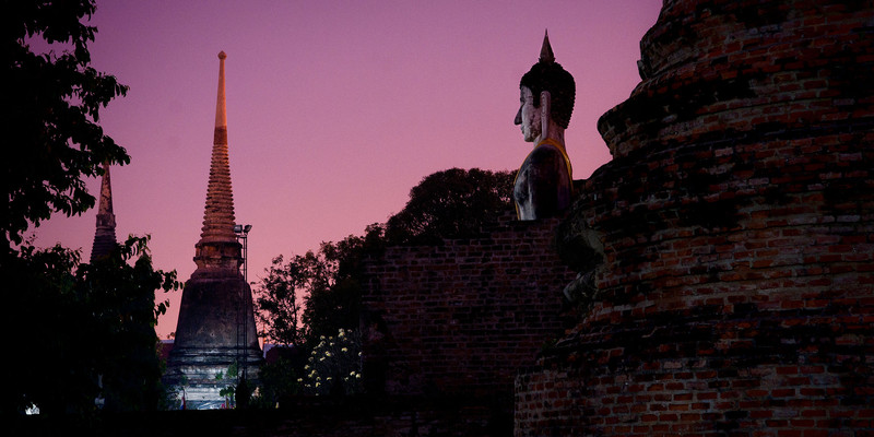 拉嘉布拉那寺以它宏伟的宝塔著名,宝塔建于公元1424年,是大城王朝的七世王所建。相传寺庙里埋葬了以前的国王和王子,穿过只剩下一面墙壁的大门,老远就能看见主塔,古老而宏伟,仿佛进入遥远时空,周围是残损的佛堂围墙、支离破碎的佛陀,参天的大树和闭目微笑的佛像。