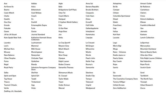 这里除了有日本本土品牌Beams、Tsumori Chisato、As Know As等,也有Armani、Coach、Zegna等世界知名品牌,其中:Crocs的洞洞鞋几乎半价;运动品牌的折扣力度非常大,尤其是耐克、阿迪折扣店的价格非常低,能淘到好货;常年打五折的Coach也是不能错过的,在店员那还能领到7优惠卡,享受折上折。