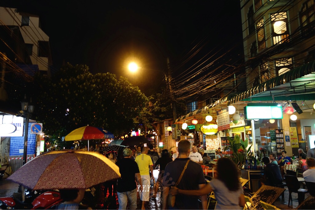 考山路被形容为“东方与西方的交界之处”,这里的旅客比当地人多出好几倍,感觉考山路是为远道而来的旅人而存在。夜幕降临后的考山路完全是另一番景致,这里的精彩来自浓郁的嬉皮气息。在这里,东方与西方截然不同的文化氛围奇妙地融合在一起。