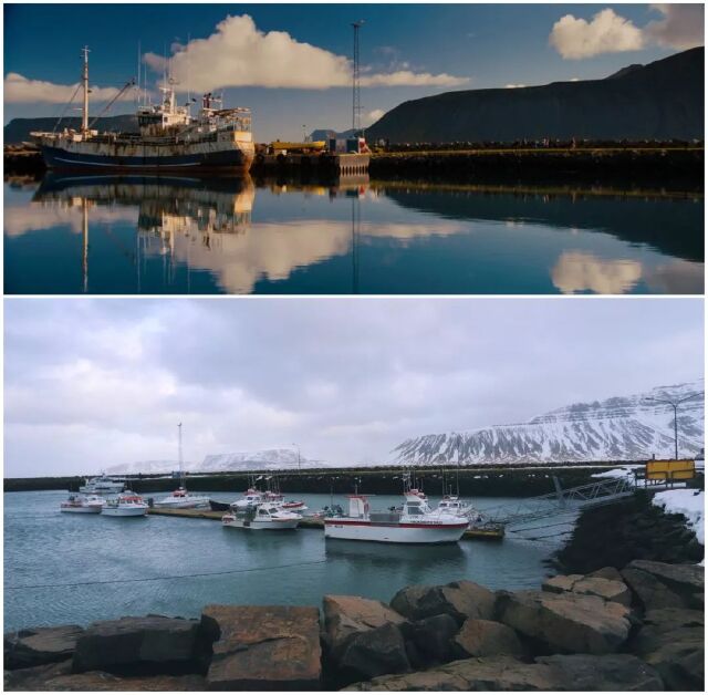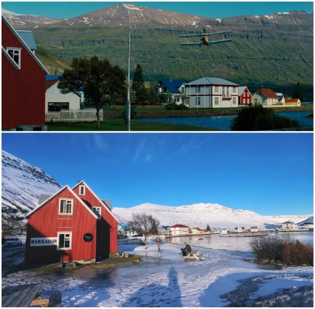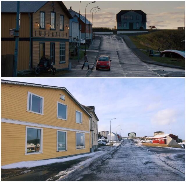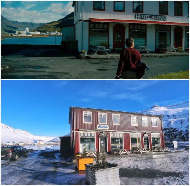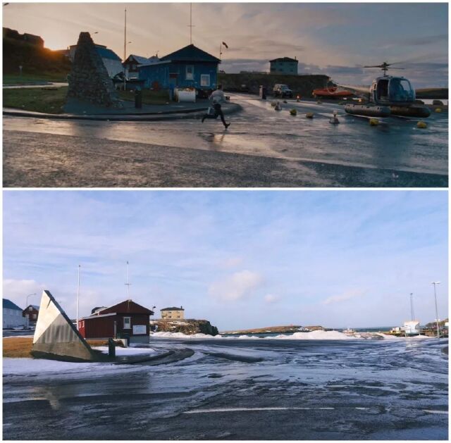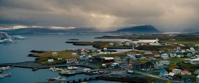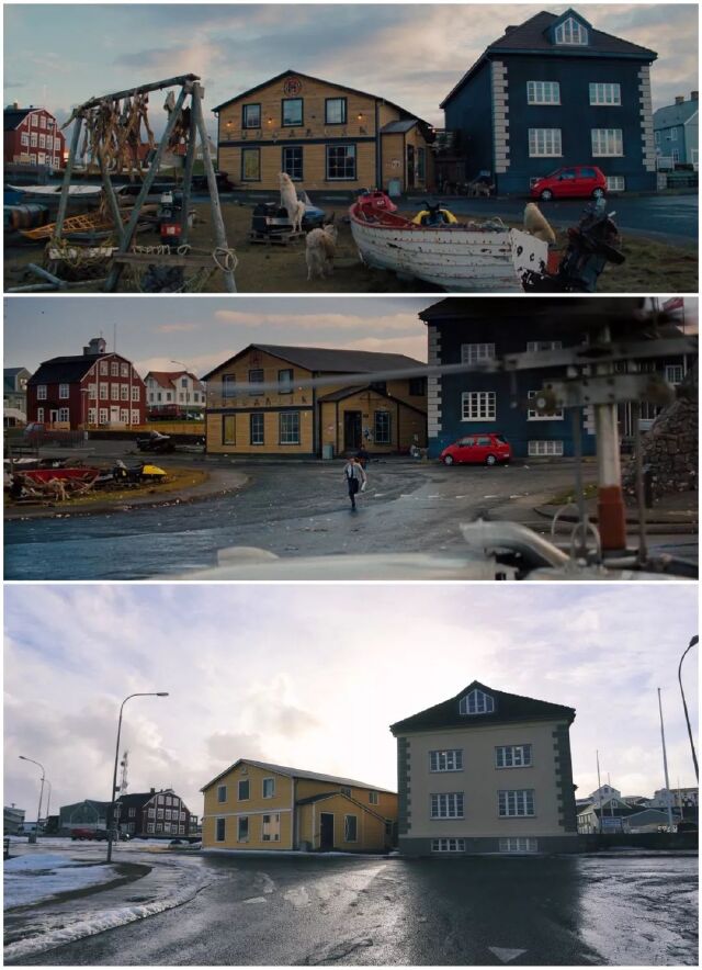 主人公踏着《Step Out》的背景音乐从美国出发前往格陵兰岛,首先映入眼帘的海港小镇。电影中的设定是在格陵兰岛,拍摄地却是在冰岛。