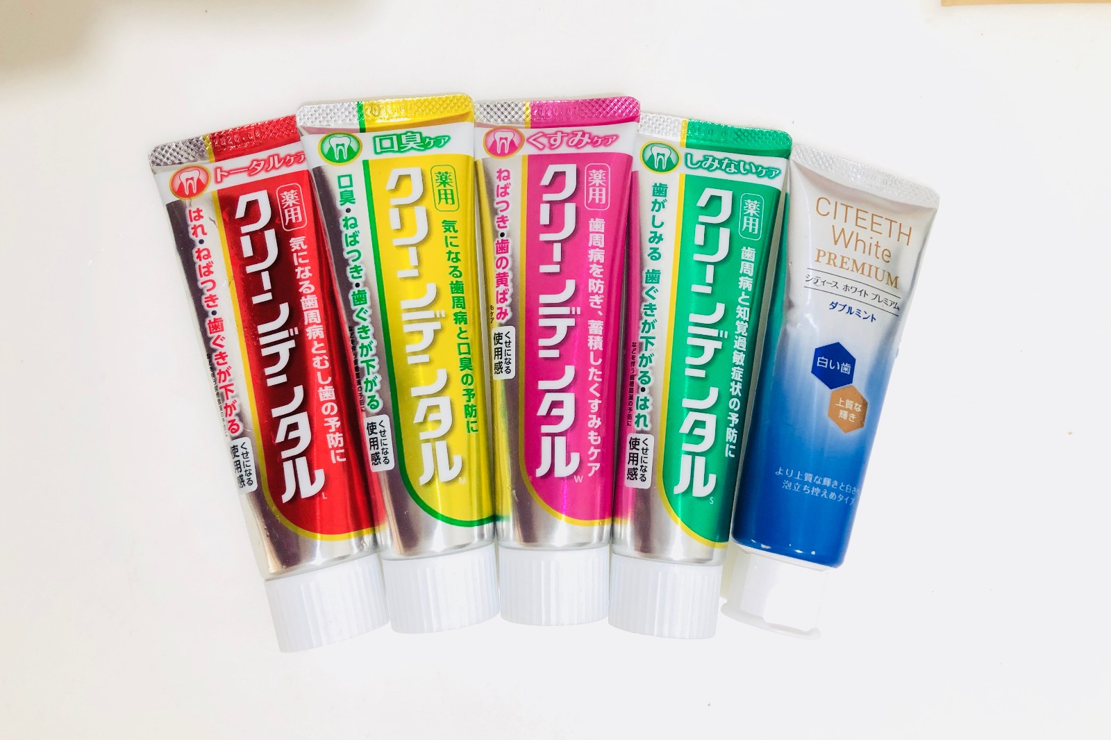前四支为Clean Dental药用牙膏,可以预防牙周疾病,改善早晨口气问题,尤其是牙龈经常红肿的朋友,用这款牙膏真的不会红肿哦。
