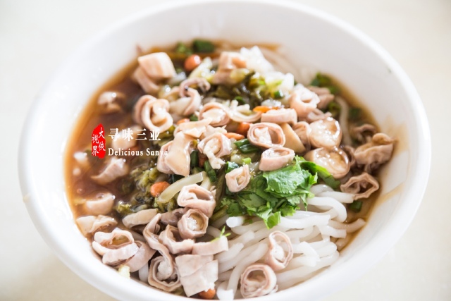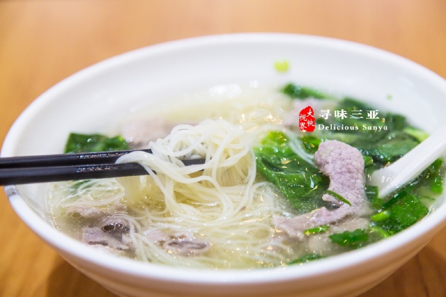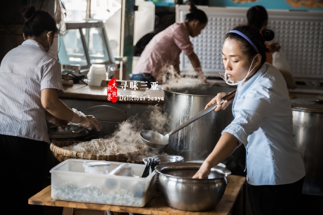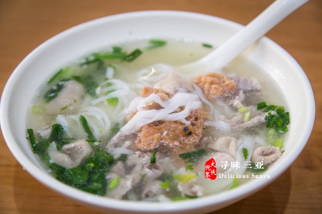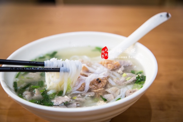 三亚吃港门粉的地方很多,在三亚老城区的大街小巷随处可见,阿伟说他很喜欢薇妈港门粉,汤头特别的鲜美,粉也极为细嫩软糯,吃上一口,唇齿留香,再喝上一口汤,神清气爽。