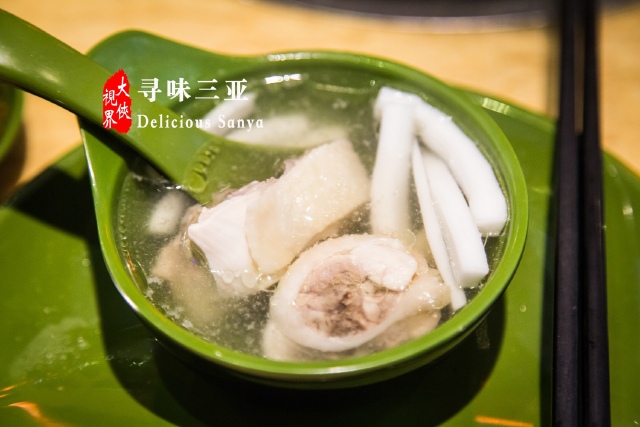 不知道是不是因为山鸡太贵又稀少,点单的时候说没来,只好点了乌鸡来代替。等端上来的时候发现,光是闻着味道就知道大补,除了猪肚、乌鸡和胡椒,还有其他一些中药材及调味。说到这,又不得不要盛赞下三亚的牙口好,喜欢吃很有嚼劲的鸡肉,这在后面很多的美食推荐中都有体验,特别是干煸老鸭,咬起来那叫一个费力,但是越费力越想吃,越嚼越有劲。