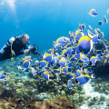 带上太空帽,进入海底世界,用氧气管通到海面换气,不会游泳的朋友也可以体会被鱼儿环绕的幸福感。漫步在海底世界,各种各样五彩缤纷的鱼儿就在你身边悠哉游来游去,完全秒杀国内的海洋馆有木有!