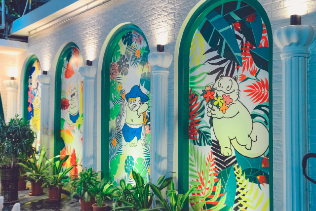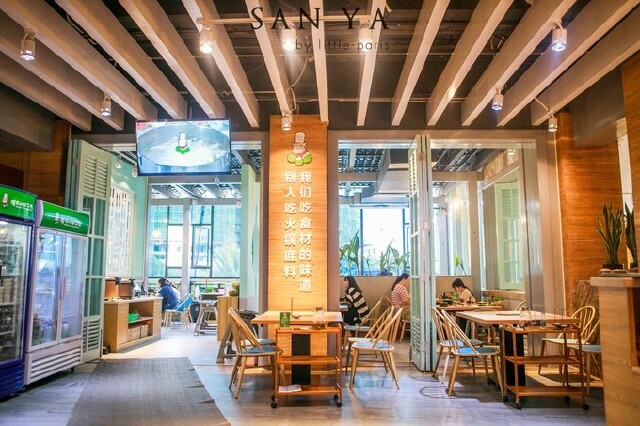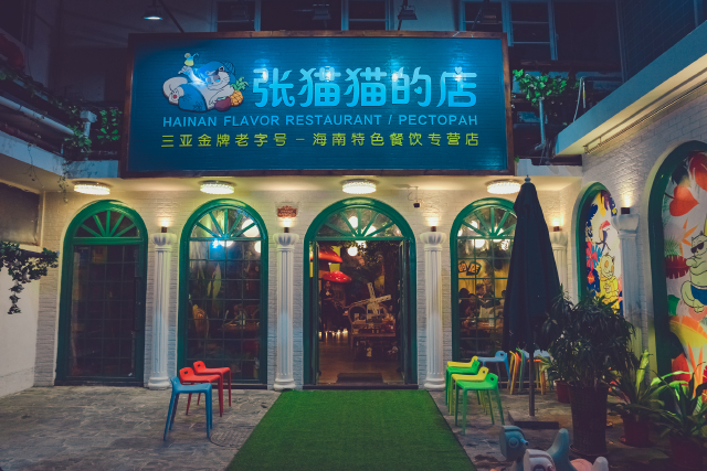 这是一家三亚很有名的网红餐饮店,位于海韵路2-2号,马路对面就是夏日百货大楼。但是如果你不走到店正对面的话你是看不到这家店的,店铺的门脸是凹进去的。用餐的人很多,有的时候需要排队。