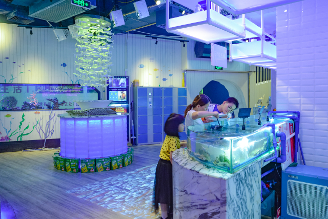 也可以自己去餐厅入口的水产缸里捞鲜活的海鲜,然后再交给餐厅的厨师代加工,螃蟹、皮皮虾、大闸蟹、鲜鲍鱼应有尽有,想吃多少都可以。
