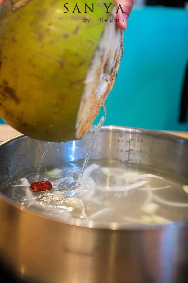 椰子汁、 文昌 鸡、马蹄、椰肉、红枣、枸杞、这样的组合一起小伙熬煮,滋补又美味,汤汁既有椰子的清甜,又有鸡肉的鲜香,绝对是 三亚 本土的一道特色美食啊。除了原本汤底的3个椰子汁的量外,如果吃到中途想要再加一个椰子汁,也是免费的。椰肉和马蹄自然是调节汤底口味的,可以根据自己的口味适当加。