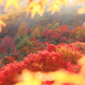 因七宝竜寺和温泉一条街而闻名的犬鸣山,拥有约3000米的步道。每年11月中旬,漫山的枫叶开始显露,沿着步道而行,沿途可以看到瀑布、修道场、岩石以及红叶盛放的美景。在附近的温泉,还可以一边享受温泉的滋润,一边欣赏红叶,轻松悠闲。