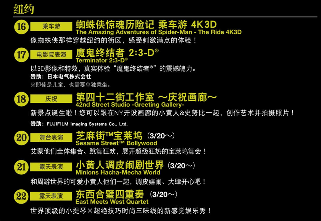 (1)两大游乐设施:好莱坞美梦·乘车游、好莱坞美梦·乘车游~逆转世界~