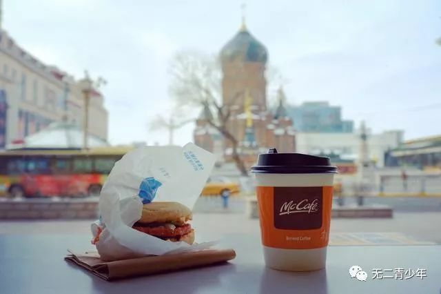 正对着圣·索菲亚教堂,喝杯豆浆,吃个汉堡,几分悠闲几分惬意,如果这会儿能下场小雪,就更美妙了。