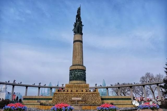 向北穿行整条中央大街,就到了哈尔滨防洪纪念塔。防洪纪念塔1958年10月1日建成,由前苏联设计师巴吉斯·兹耶列夫和哈工大第二代建筑师李光耀共同设计,为了纪念哈尔滨市人民战胜“57年特大洪水”而建。