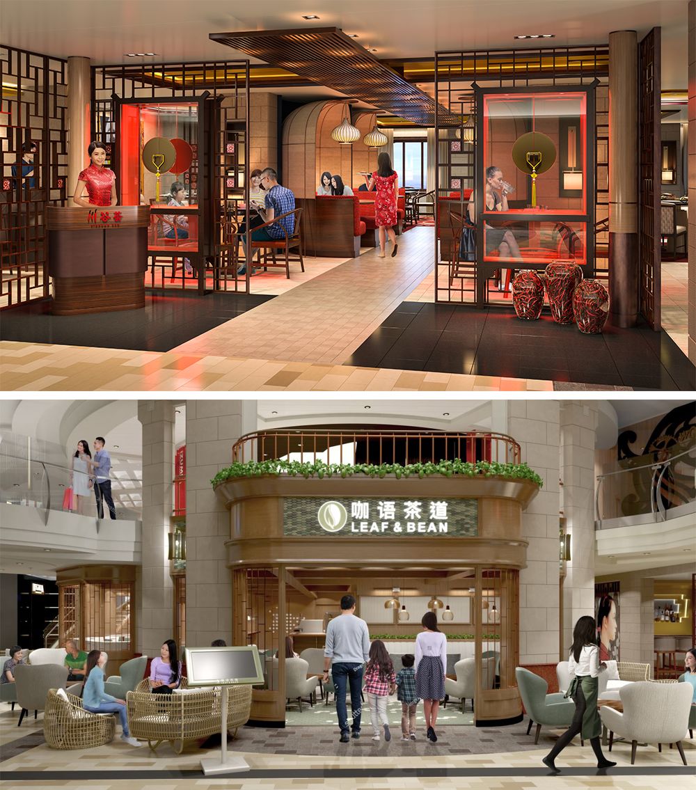 创新概念餐厅包括川谷荟(Sichuan Red)——为宾客提供地道川菜料理;大董意境坊(Wonderland’s Dadong)——中国明星主厨大董的海上美食分店,以精心烹制的招牌烤鸭而闻名;集传统茶室和咖啡厅为一体的咖语茶道(Leaf and Bean),宾客可以品尝中式茗茶、创意茶饮、经典咖啡及现场烘焙的中西点心。