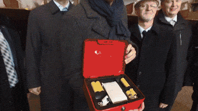 按照航运传统,在船中第一个模块(block)下面放置象征幸运的硬币。