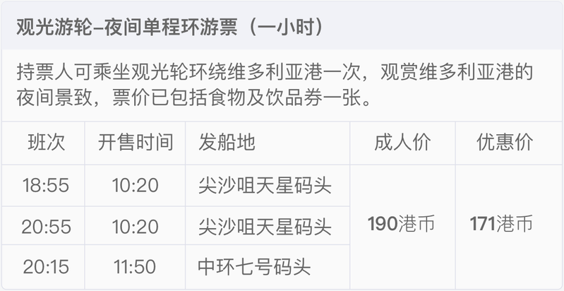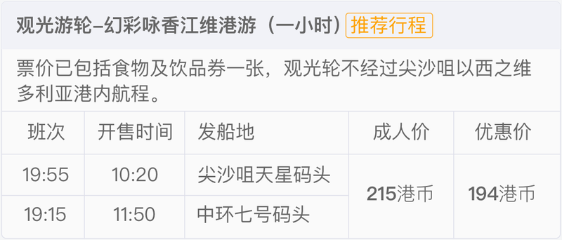 维多利亚港,国家4A级景点,链接香港岛和到九龙半岛,是亚洲第一大海港,拥有香港最美夜景。每晚8:00,维港这边会举办“幻彩咏香江”的激光射灯和音乐表演,超过40座高楼大厦参与这次表演,使其成为全球最大型灯光音乐汇演,目前已经被列入《吉尼斯世界纪录大全》。时间充足的旅客,如果想要一睹维港夜景的精彩,推荐乘坐1小时观光游轮,走最佳观光线路观看这场灯光音乐盛宴。1小时观光游轮可以选择幻彩咏香江维港游或者夜间单程环游票,游轮票价包括了食物以及饮品券一张,所以大家不要再带着食物上船了。码头设有售票处,大家可以自行购买。时间有限的旅客,可以到尖沙咀海滨长廊沿海漫步观赏维多利亚港的全景,著名的星光大道也在这里。