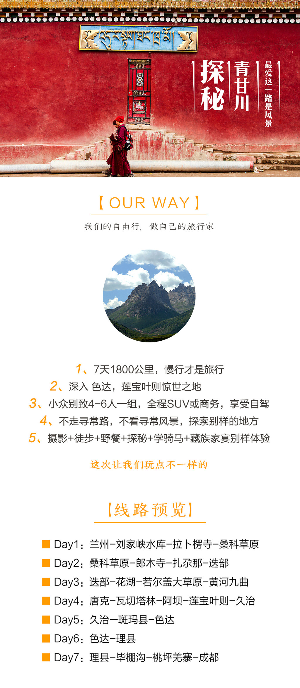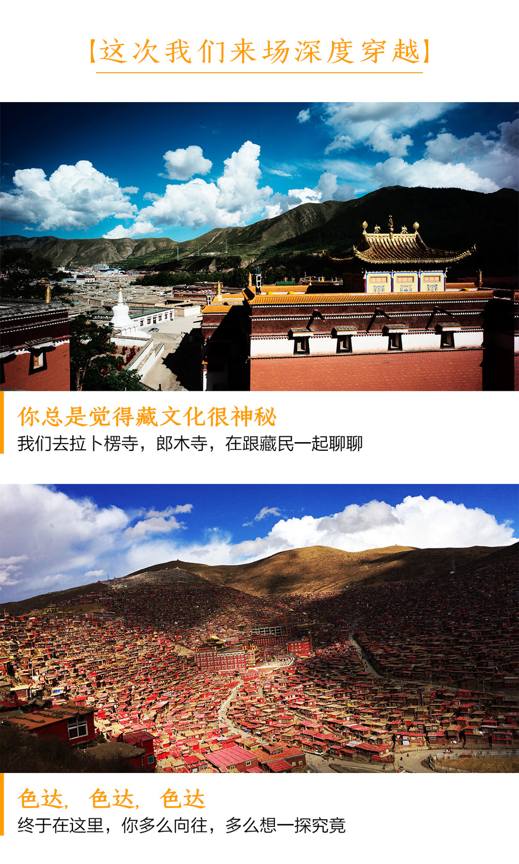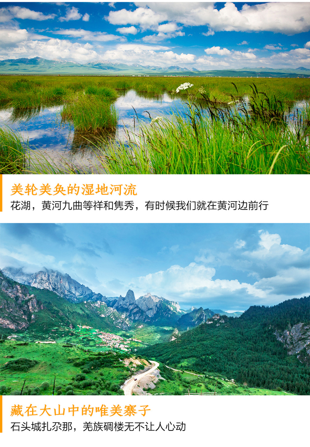 拉卜楞寺,郎木寺,扎尕那,花湖,唐克黄河九曲,莲宝叶则,色达,毕棚沟,桃坪羌寨,探秘甘青川,深度摄影行,精华景点一网打尽。