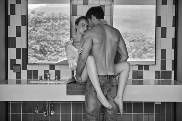 两个浴室间仅隔着一面透明的玻璃,看得见摸不着的光滑曲线,别想着打碎玻璃屏障,惊喜总是需要等待的。