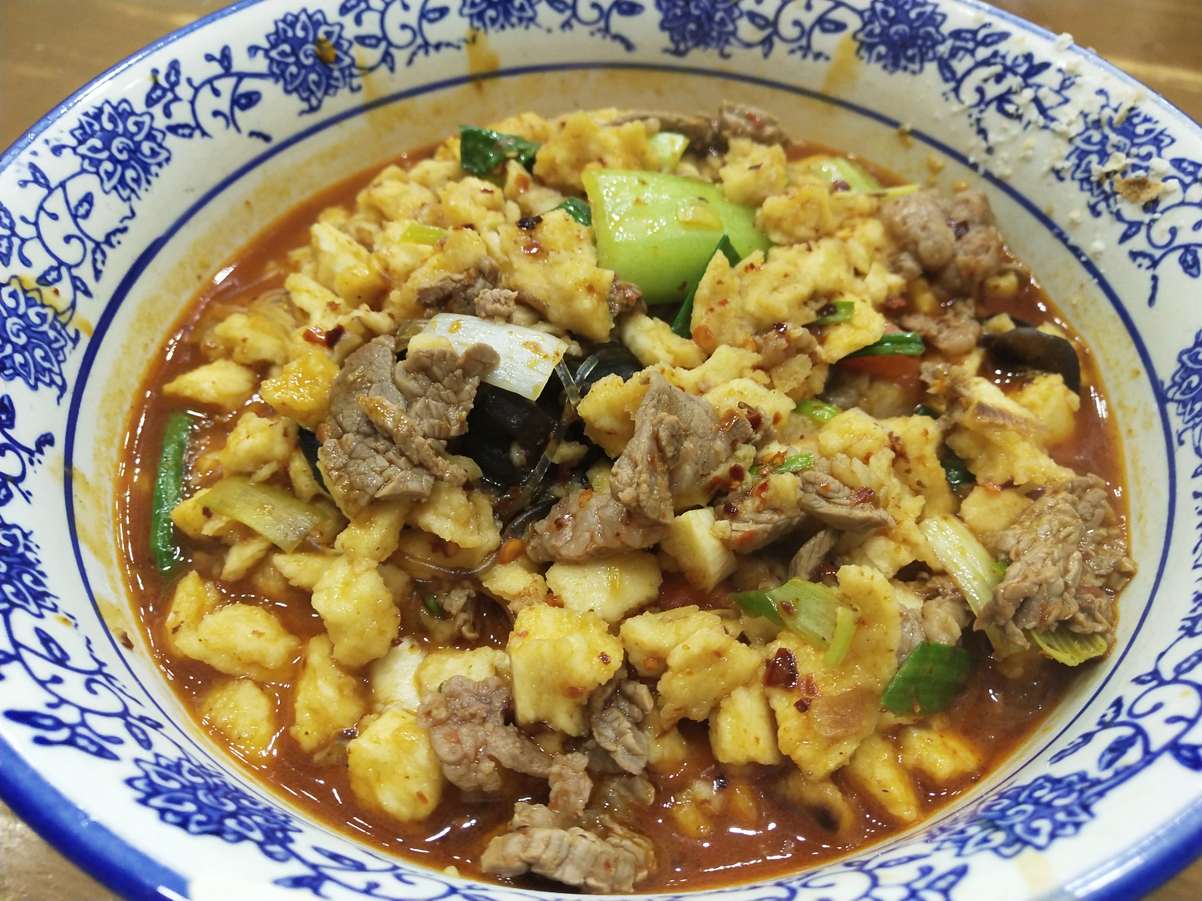 在回民街附近的一条当地居民生活的街道,随便找了一家小店,没有选择羊肉泡馍,而是学当地人选了一份炒馍,自己亲自掰下来的馍,脚嚼起来非常有味道,一大碗不一会儿就呼噜噜都下肚。
