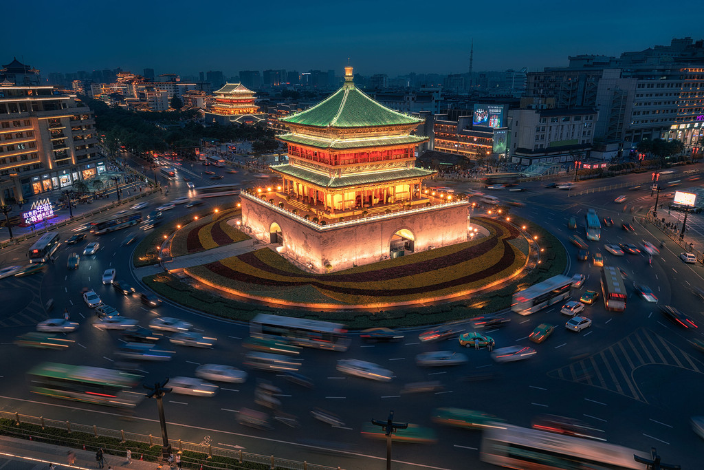 此外,钟、鼓楼附近非常适合住宿,到市内各景点都比较便利,夜宿在此,晚上出门在欣赏钟、鼓楼夜景,散步拍照,还能顺便吃一道小吃。钟楼早晨9点的敲钟表演,让人们在钟声中开始游历西安。