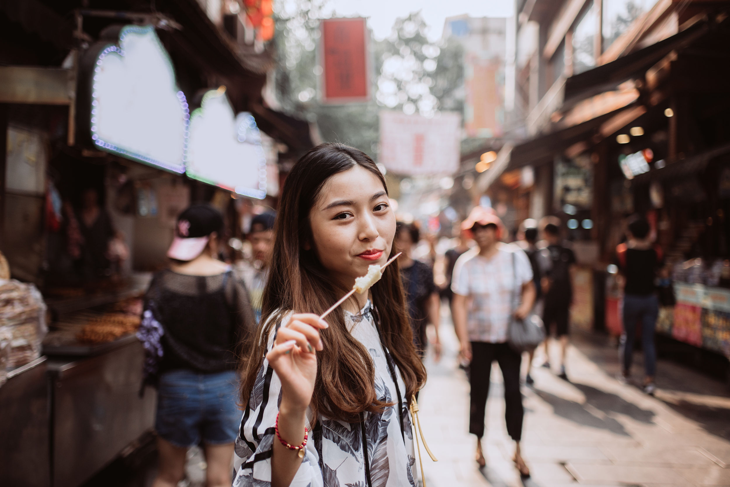 这里你能品尝到正宗西北风味的肉夹馍、五花八门的面食、烤架上滋滋冒烟的红柳烤串,以及“定家小酥肉”、“贾三灌汤包”这类数十年历史的招牌老店,口碑与美味兼得。街上热闹的市井气息也值得驻足,回民操着娴熟的手艺,当街甩面、烤串、切桂花糕,观看美食诞生的过程非常有趣,也是感受西安美食文化的大好时机。