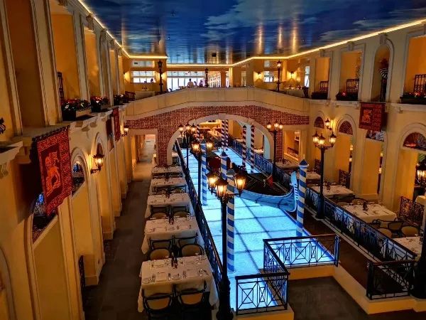 邮轮上有提供免费的餐厅用餐。三个免费主餐厅分别为第3层的马可波罗餐厅、大运河餐厅和第10层的自助餐厅(丽都市集自助餐厅)。