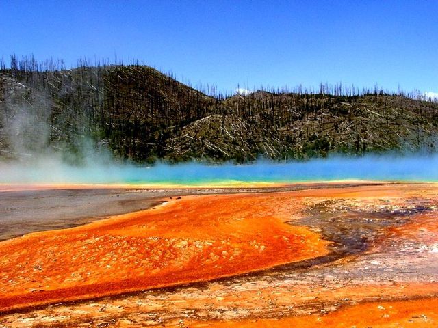 而火洞河则呈现出黄黑的颜色,是因为它的河水中含有大量硫物质。前往知名的是老忠实泉间歇泉,间歇泉区很好的表现了公园的地热特征,分为上间歇泉盆地、中间歇泉盆地、下间歇泉盆地。