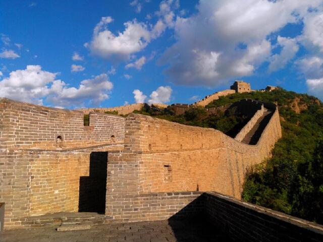 金山岭长城位于承德市滦平县与北京市密云县交界处,是由明代抗倭名将戚继光亲自主持修建的一段长城。这段长城依附重重山峦而建,逶迤曲折,登上长城,视野非常开阔壮观,是明代长城中景色最为秀美雄壮的一段。在长城的北侧与之对应的则是一条近似平行的马路,马路东侧的起点即为景区入口。在马路上,共有三处岔路口通向山顶的长城,分别为靠近景区入口的涵龙沟,马路中间的沙岭沟和最深处马路尽头的砖垛口,每条入口爬上长城都需要1小时左右,需要一定体力。在涵龙沟处有有一条索道,乘坐索道上山仅需20分钟,单程40元,往返80元,体力不足者可以选择乘坐。游览整个景区约需要半天,若从北京市区前来,则需要准备一天左右。