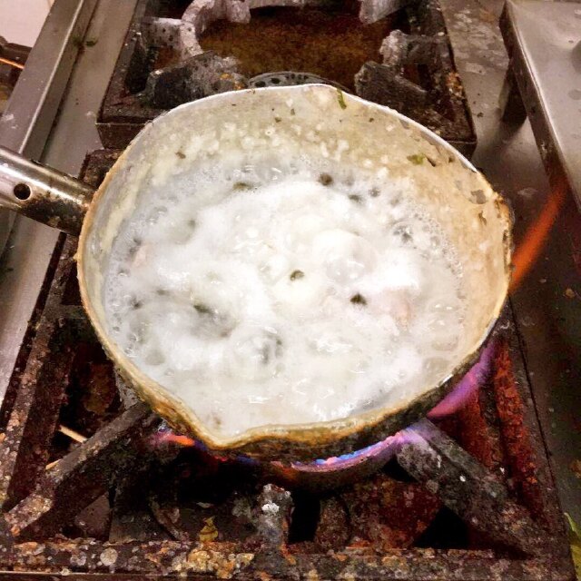 那圆圆的小盒子里是在做布拉肠,做好后拿出来摊