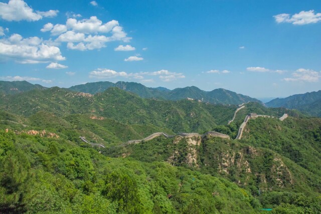 八达岭长城,建于明朝弘治十八年,修建八十余年,山峦重叠,形势险要,长达1300多里,是中国古代伟大的防御工程万里长城的一部分。