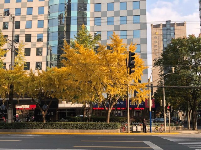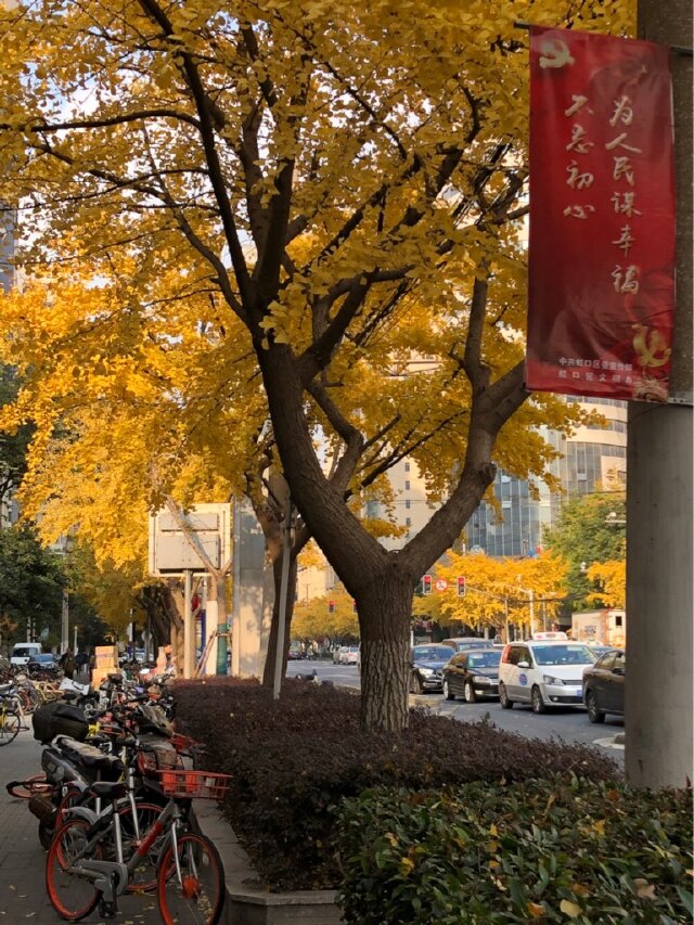四平路上的银杏延续着几公里路,每年到这个时候,路上会有很多人来欣赏,因为交通便利,地铁🚇四号,十号线,到海伦路站出来就到了,也可以乘在公交车上看银杏,61和55路也是在四平路上行走的。