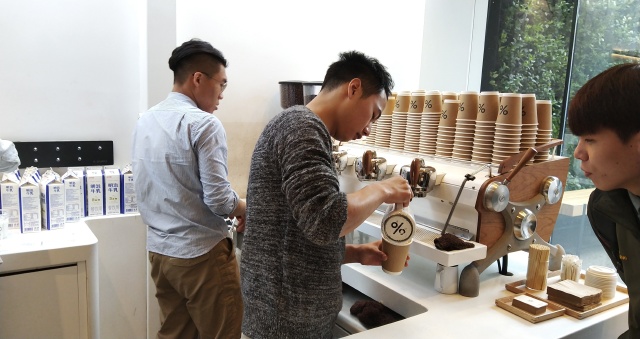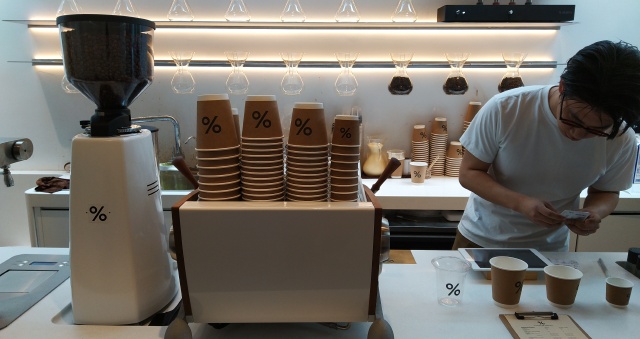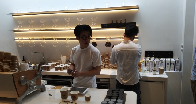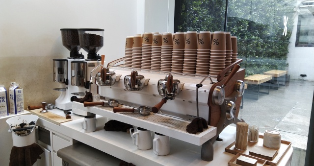 很醒目的绿墙上大大的%十分引人注目,也是大家和咖啡合照的首选地。其实去年在京都,有专门去岚山那家喝过,岚山店太小了,所以很拥挤,上海这家自带庭院,还是比较舒服的。京都另一家就在我住的酒店附近,靠近花见小路。现在品牌积极向外拓展,亚洲区域香港迪拜都有好几家了,上海据说五月份也会开第二家,在外滩。到时候肯定再去。当然我还是更爱蓝瓶子,东京的蓝瓶子已经够美了,京都最近也开了第一家,简直美爆了!