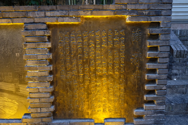 不同于宽巷子和窄巷子的热闹繁华,井巷子很幽静,没有那么多游客,有的只是古老的砖墙和民情展示,比较有历史感的地方。古老的砖墙上绘制了多幅黑白老图片,与墙体和街道浑然一体,让我们仿佛回到了历史,回到了从前,那是老成都人的生活写真。