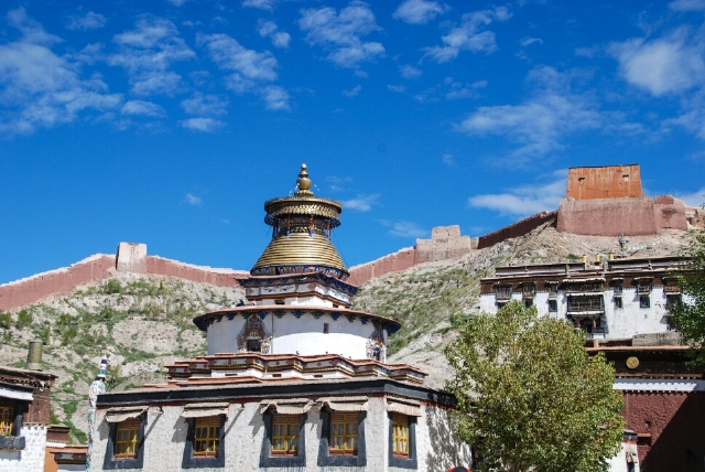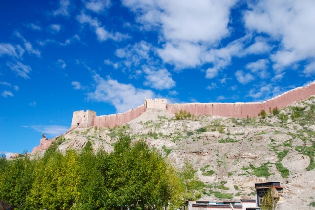 白居寺始建于明宣宗宣德二年(1427年),历时十年竣工。它是一座塔寺结合的典型的藏传佛教寺院建筑,塔中有寺、寺中有塔,寺塔天然浑成,相得益彰,它的建筑充分代表了13世纪末至15世纪中叶后藏地区寺院建筑的典型样式。后山有一截城墙颇为壮观,亦是白居寺独特的风景。